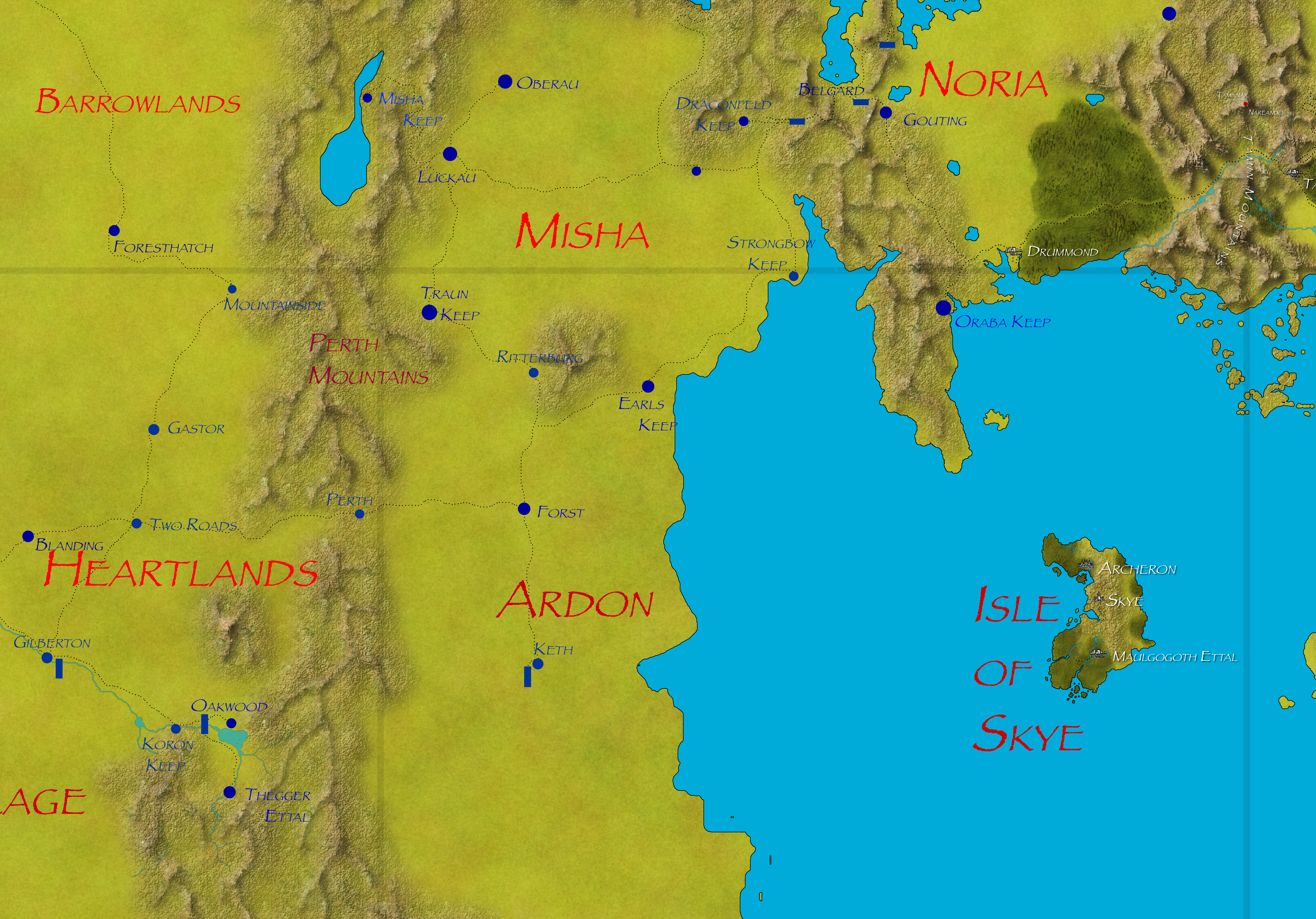 Slowly adding content.Map of the Dalelands including the southern Tämin Mountain Range and Cavan