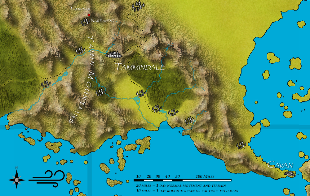 Map of the Dalelands including the southern Tämin Mountain Range and Cavan